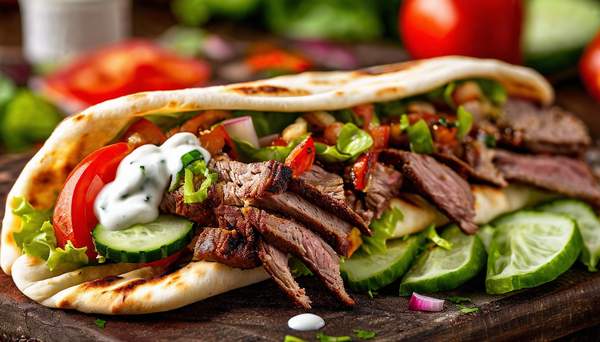 Mięso, torilla lub pita arabska, autorskie sosy