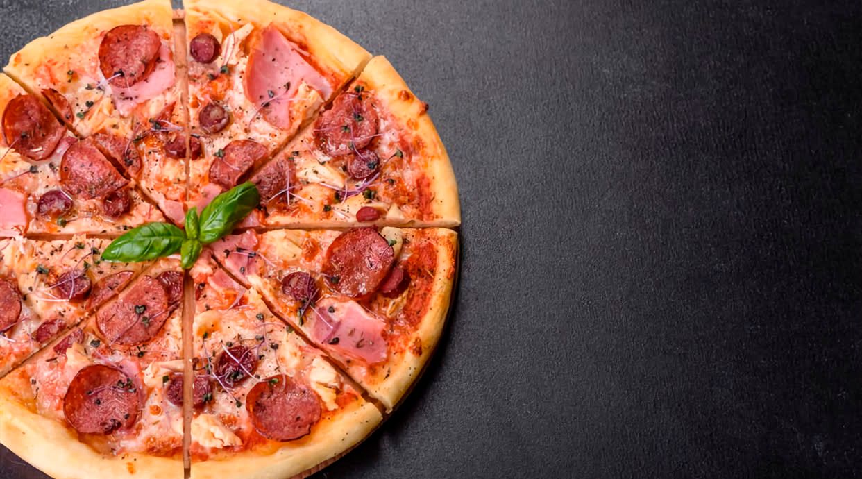 z sosem pomidorowym, mozzarellą, szynką i ananasem
