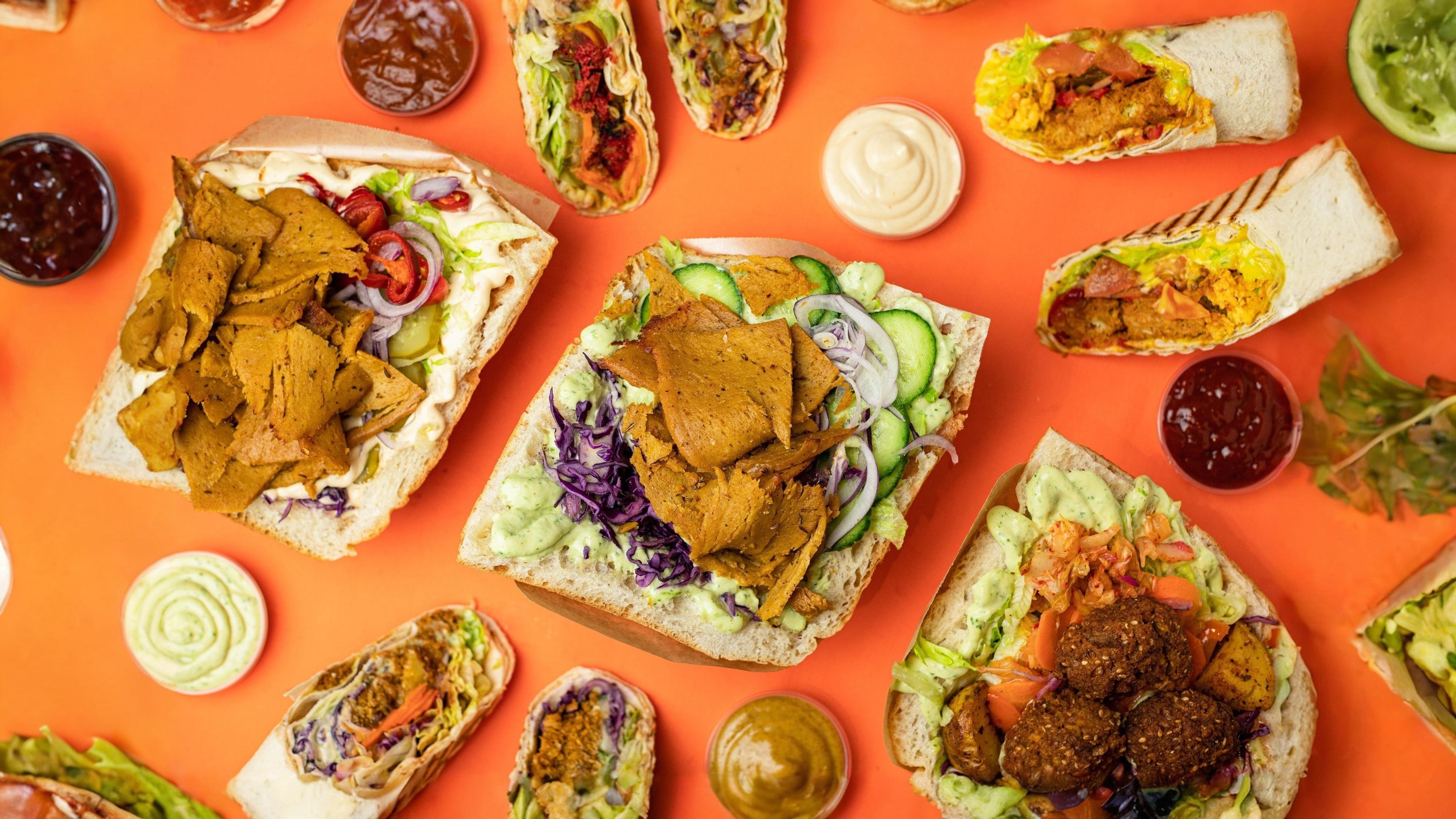 Grillowana pita od Ali Baby wypełniona wysokobiałkowym seitanem, gorącym sosem serowym, nachosami, surówą z czerwonej kapusty, czerwoną cebulą i sosem pomidorowo-śliwkowym. Coś, bez czego nie można żyć.