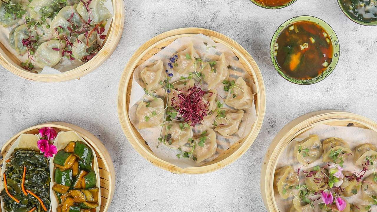 Chińskie pierogi na parze z farszem ze szpinaku i sera