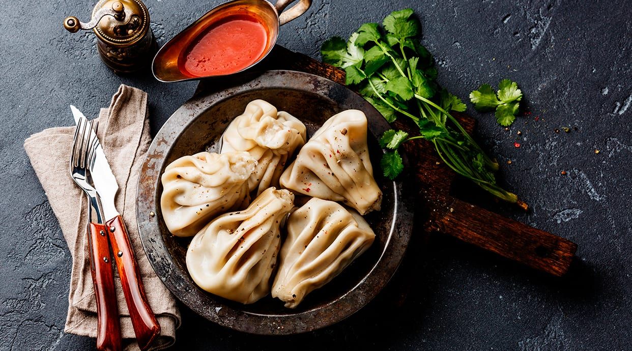 Gruzińskie pierożki wypełnione farszem z baraniny i esencjonalnym bulionem