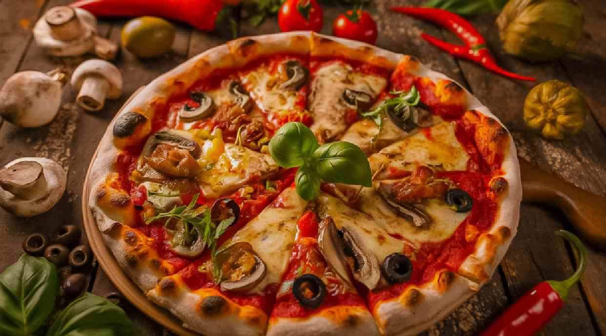Sos, ser, pieczarki, kurczak, papryka, oliwki