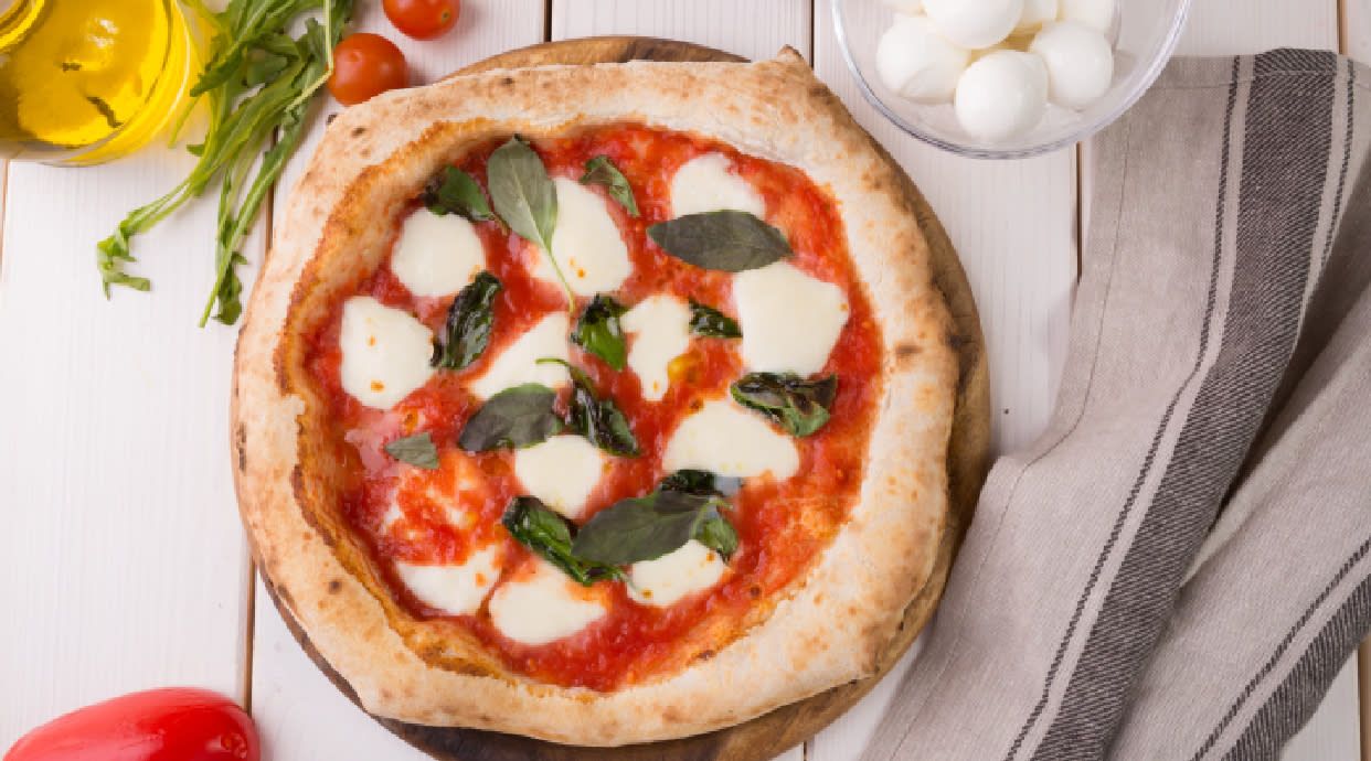 Sos pomidorowy, mozzarella, kurczak, pieczarki, cebula czerwona, oregano Doliczona cena 1pln za opakowanie