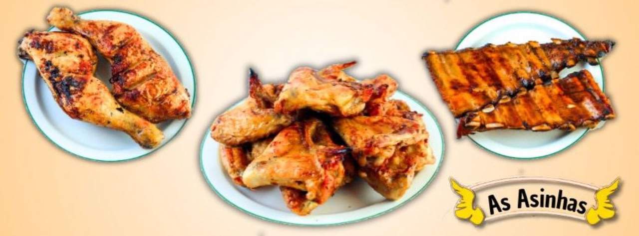 O menu inclui uma dose de asas de frango ou pernas grelhadas + batata frita média ou milho frito médio e bebida de 1 Litro