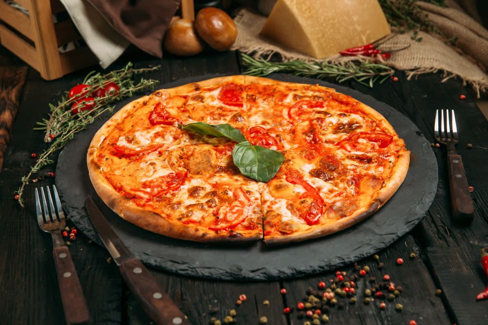 Aluat pizza, sos rosii, mozzarella, salam chorizo
