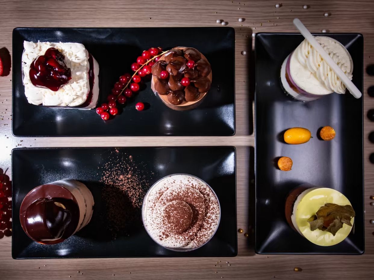 Mini prăjituri asortate cu cremă de fructe, mini eclere și mini tarte