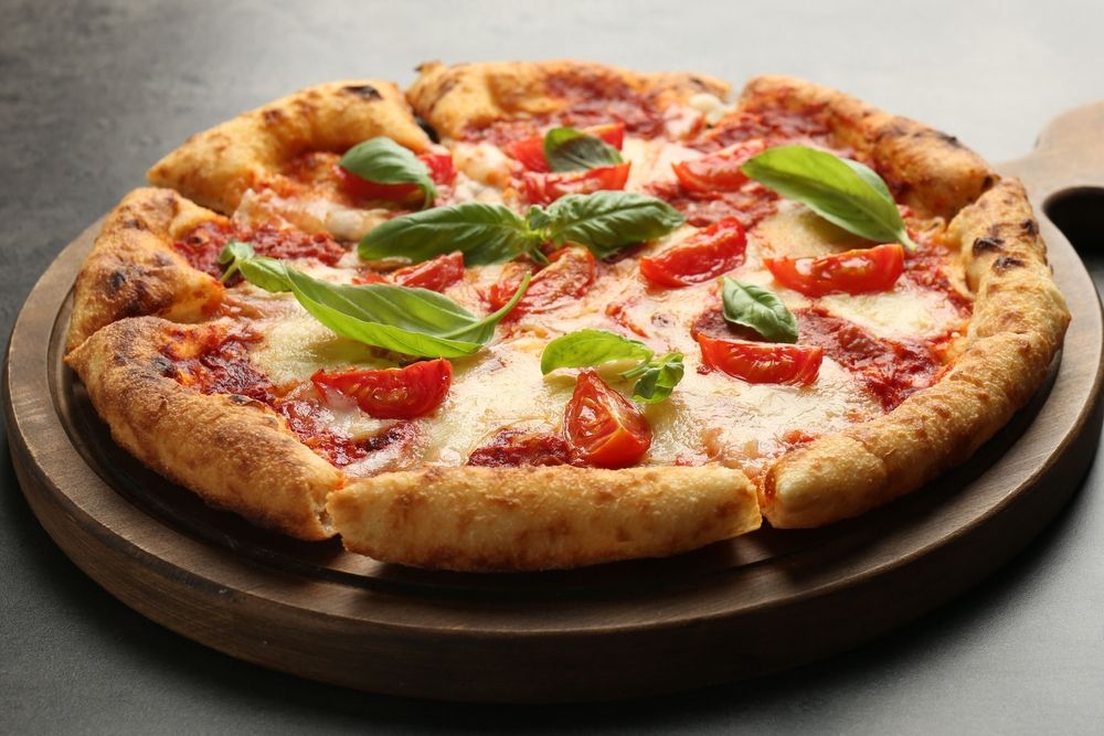 Aluat pizza, sos de rosii San Marzano, fior de latte, busuioc, parmezan - 450g
