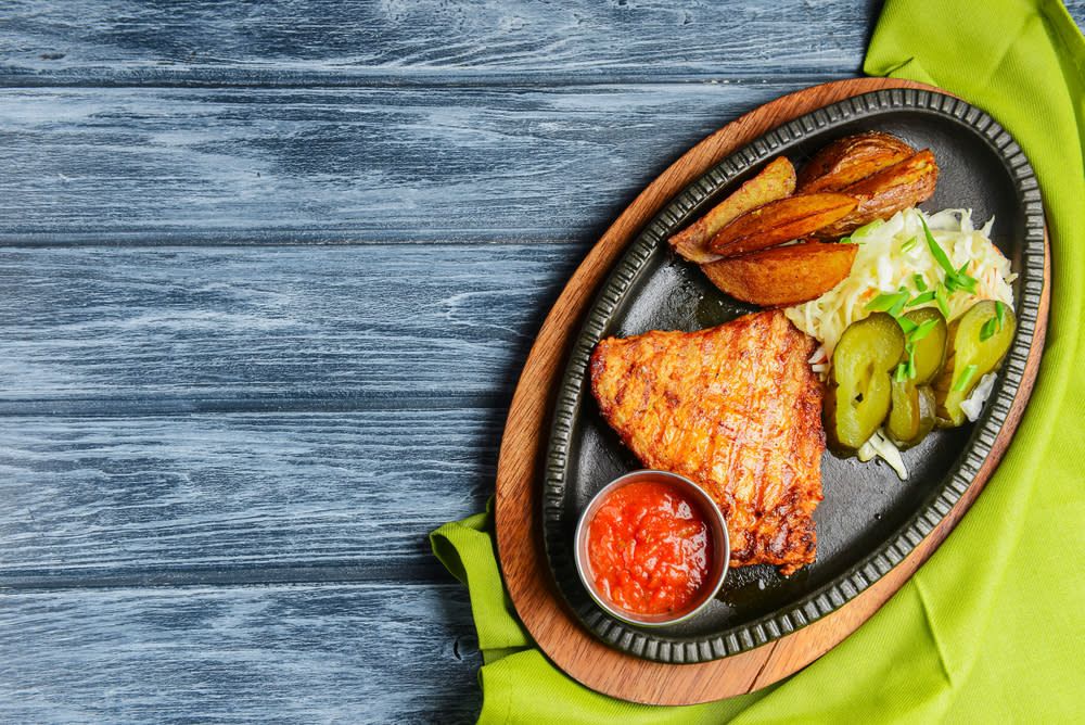 Pulpe de pui dezosate, piept de pui, ceafa de porc, carnati muntenesti, pastrama de oaie, salata de muraturi - 500g