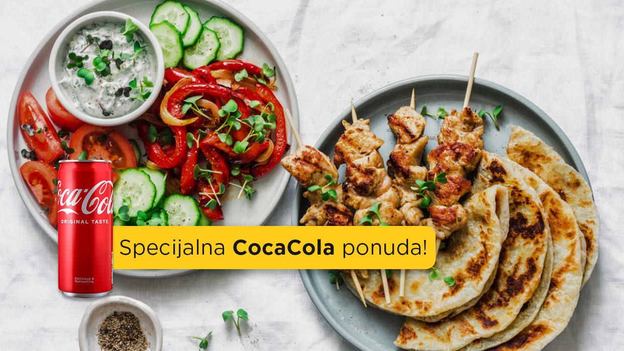 10 Ćevapa sa kajmakom u vrućem zapečenom somunu+ palačinka eurokrem + Coca cola 330ml