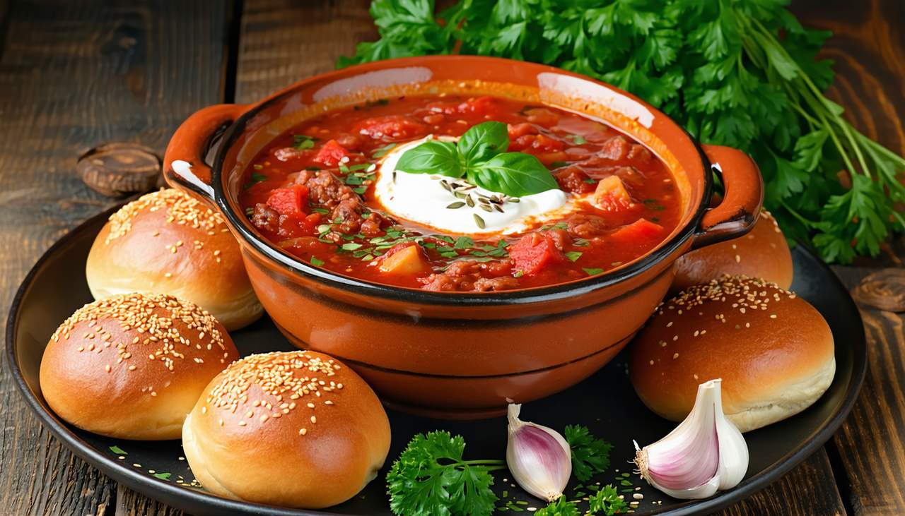 капуста б/к, картопля, цибуля, морква, буряк, томат, яловичина, сметана