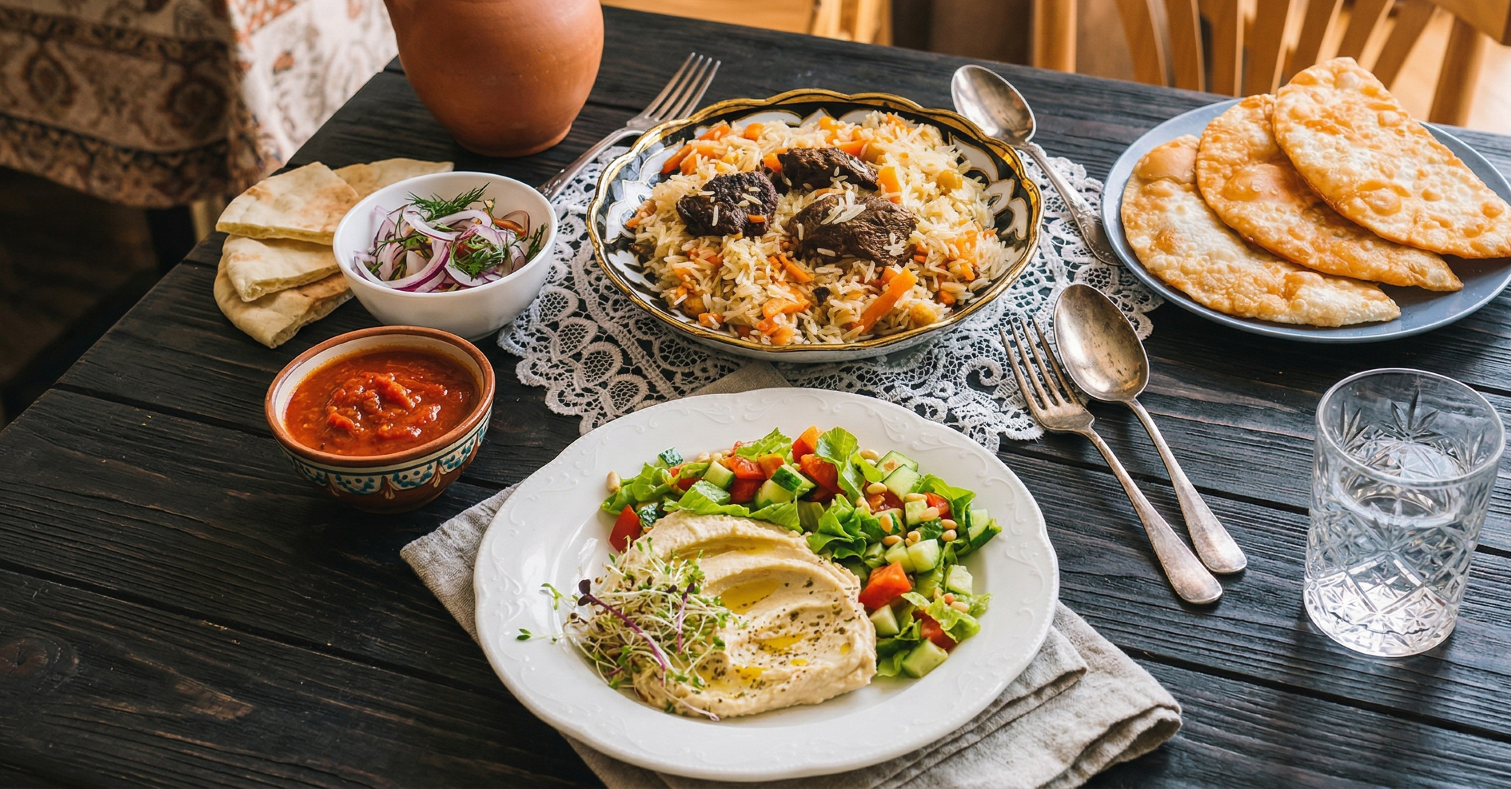 Повноцінний обід! -Узбецький плов -салат до плову - будь який чебурек -напій на вибір