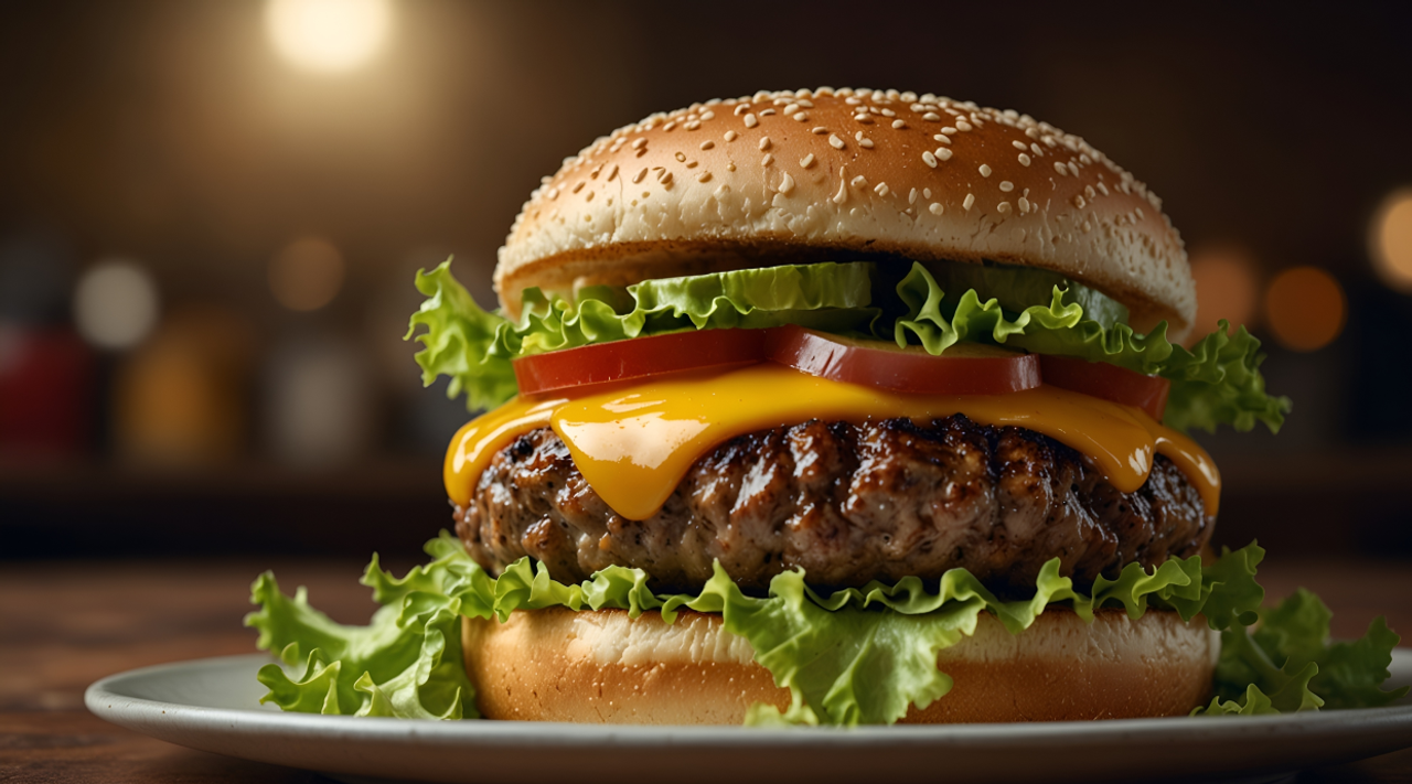 Булочка, котлета свино говяжья помідор, огірок ,лист салата ,з соус американський