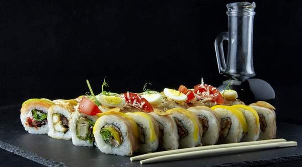Рол Каліфорнія в чевоному тобіко, Гарячий рол з лососем та трюфельним соусом, Рол Філадельфія класік, Запечений рол з креіеткою, Запечений рол зі сніговим крабом, Сашимі з лосося, Сашимі з тунця, Суші з японським омлетом, Суші з копченим лососем.