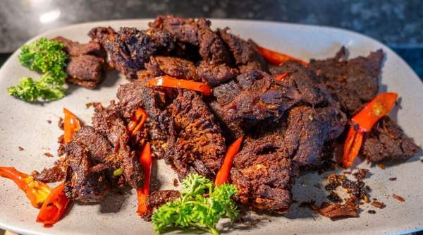 Patata dorada rellena con un jugoso guiso de carne sazonada con especies peruanas