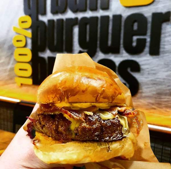 Ternera tipo smash de 70gr con pan brioche, cheddar, bacon, pepinillos y salsa Burger.