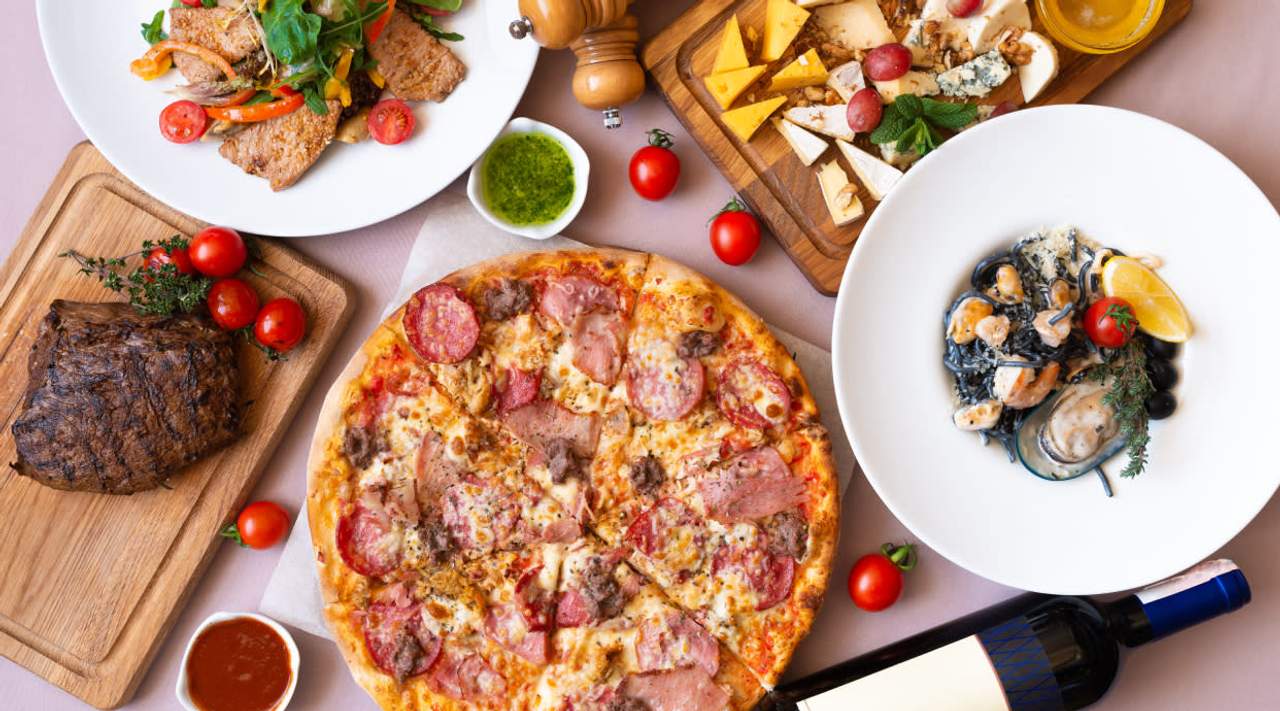 Tomate, jamón, alcachofas, bacon, chorizo, champiñones, atún, cebolla aceitunas y mozzarella