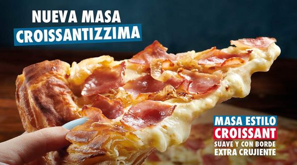 Salsa de tomate, queso 100% mozzarella, ternera especiada, pepperoni, york, bacon, cebolla, pimiento verde, champiñón y aceitunas negras.