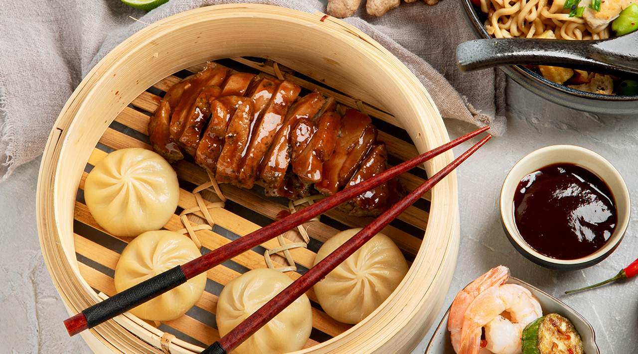 Ternera, pollo, mariscos y verduras: todos los sabores en un solo bocado.