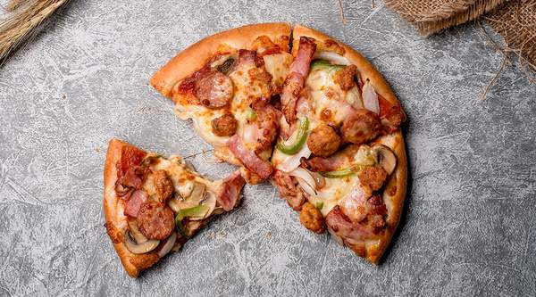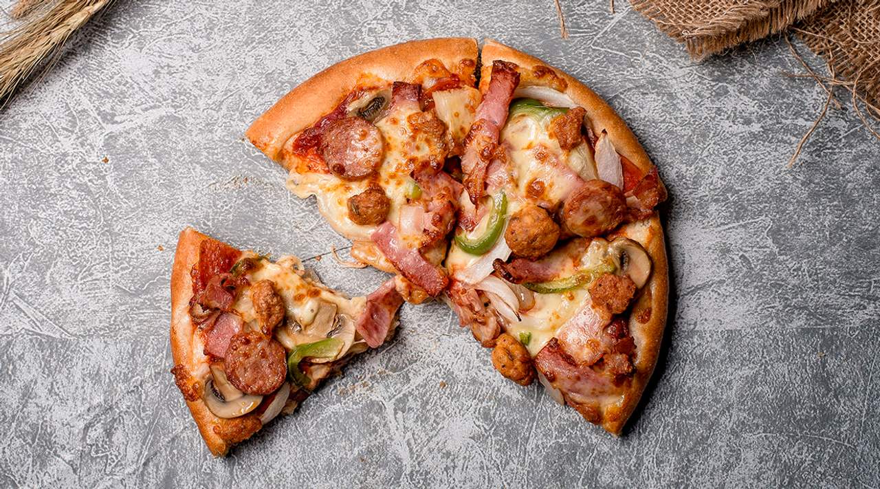 Mozzarella, bacon, huevo, parmesano y pimienta negra