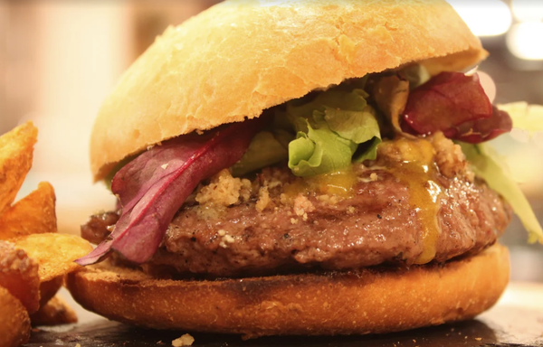 Con queso cheddar, bacon, pepinillo y barbacoa