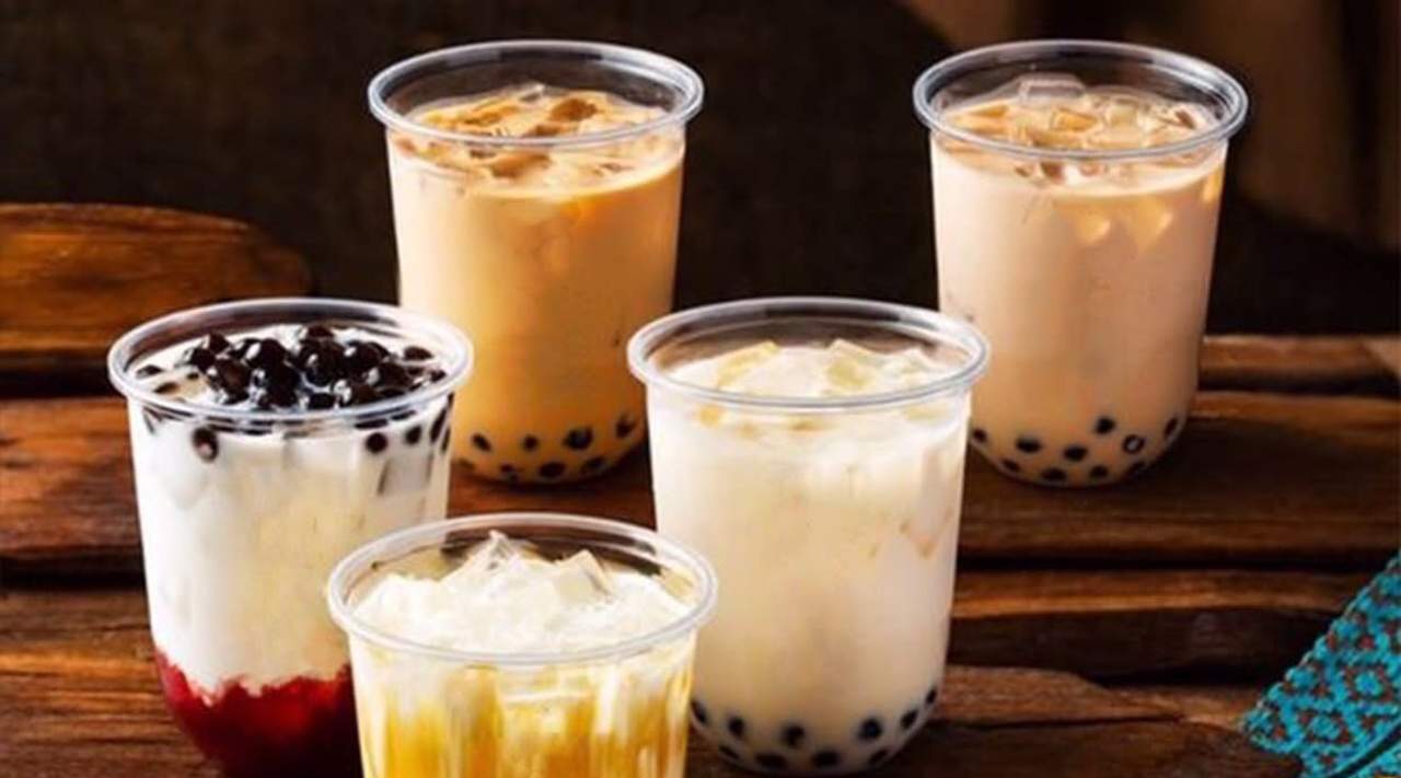 Té espaciado con leche y tapioca
