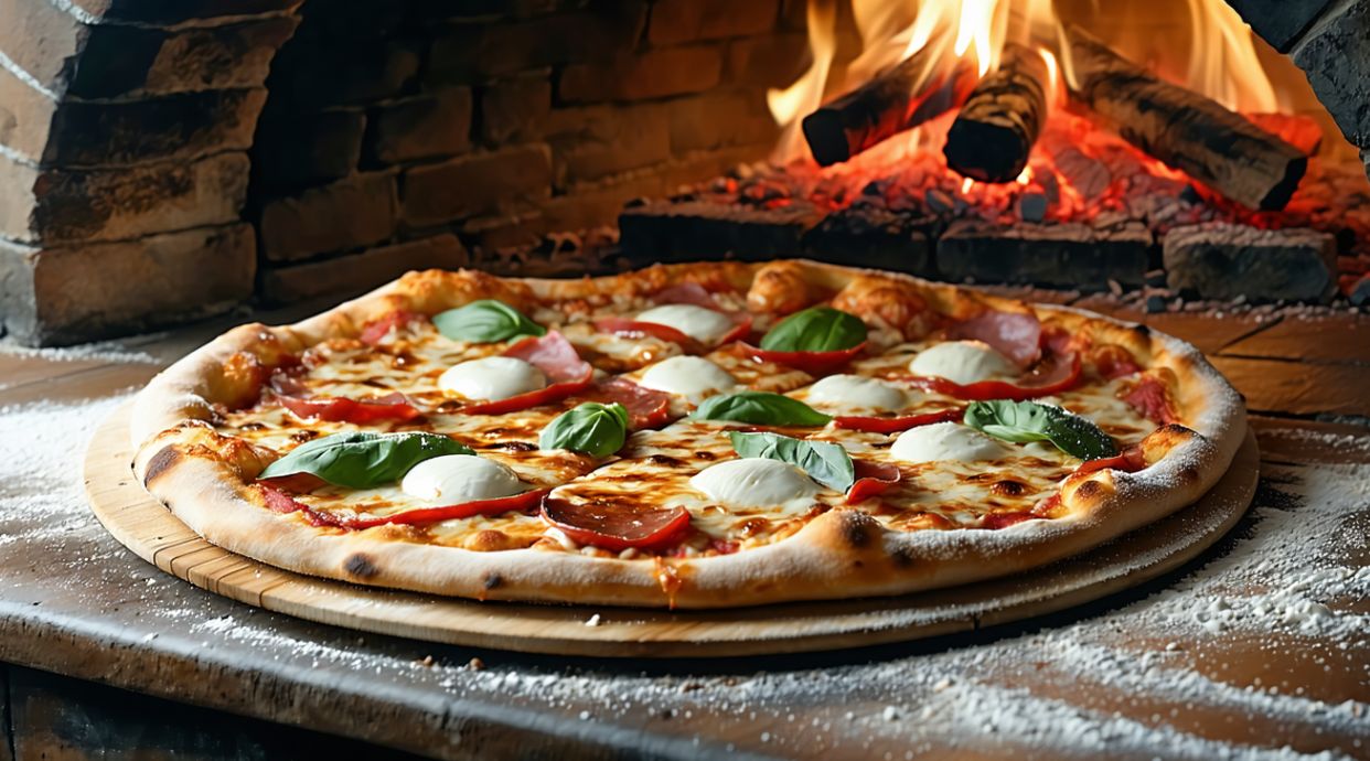 Tomate, mozzarella, jamón dulce, setas, alcachofa y aceitunas negras. La clásica capricciosa napolitana.