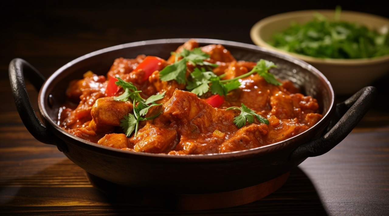 Pollo marinado en una cremosa y aromática mantequilla, con una mezcla de yogur, jengibre y ajo, que se cocina lentamente hasta alcanzar una textura jugosa y llena de sabor preferible acompañar con arroz polau o naan/porota