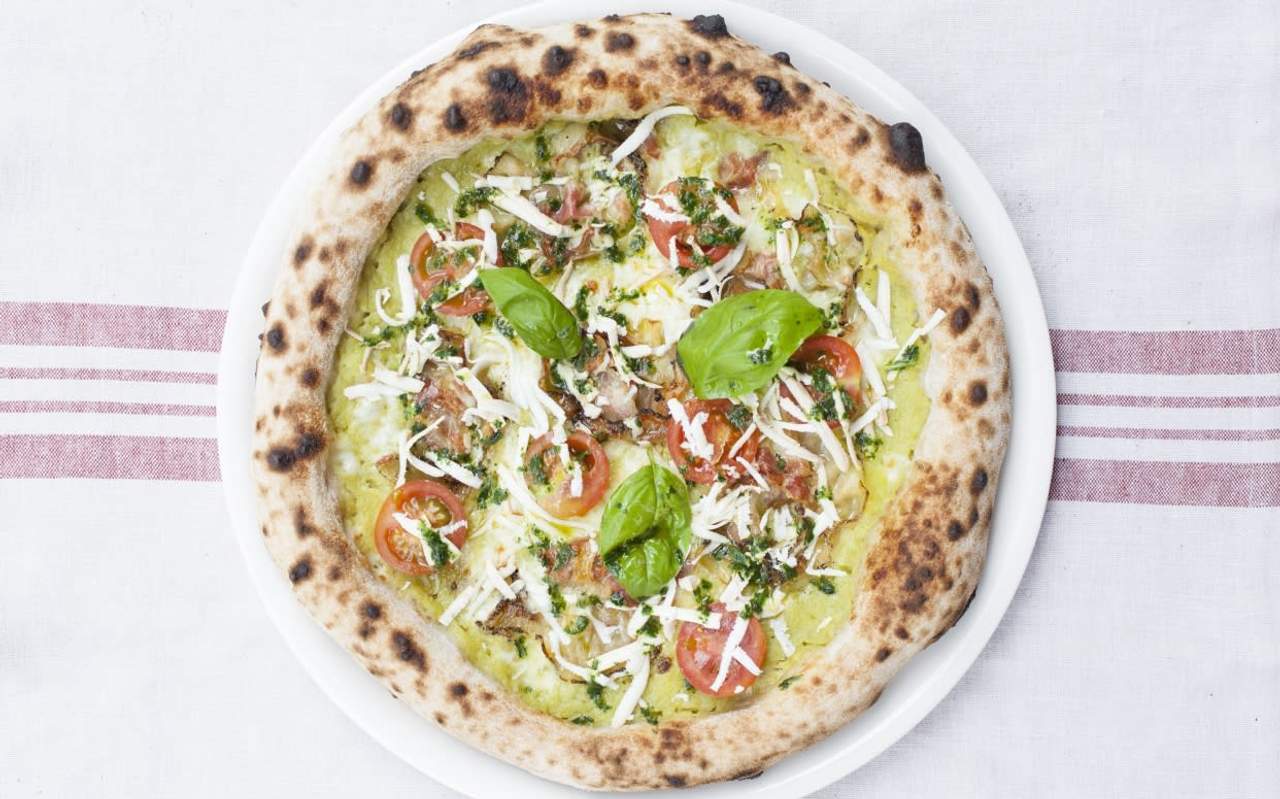 Tomate, mozzarella de búfala (horneada), parmigiano y albahaca