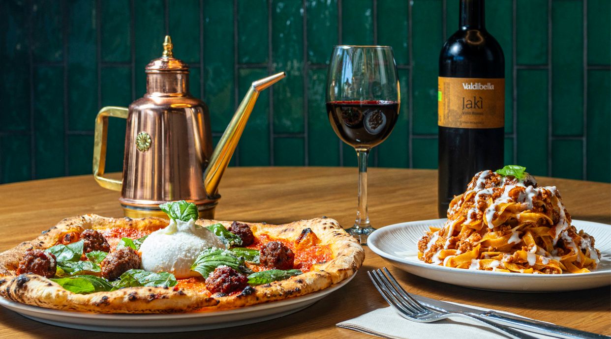 CON PARMIGIANA DE BERENJENAS, PROVOLA, ALBÓNDIGAS DE TERNERA Y FONDUE DE PARMESANO
