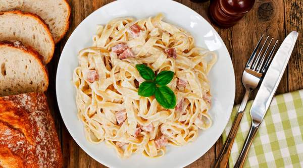 Pasta rellena de carne, jamón dulce y crema de parmesano