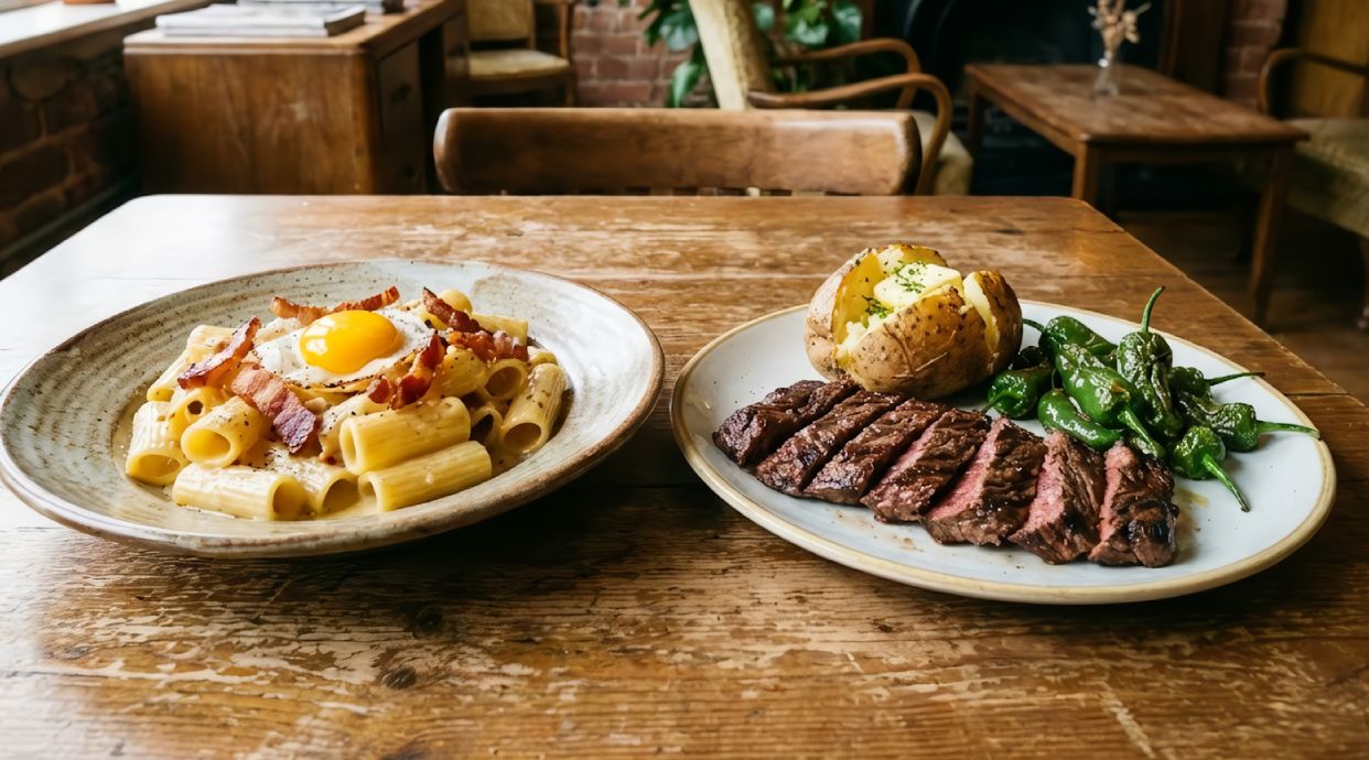 Guanciale, yema de huevo, pimienta negra y queso en polvo.