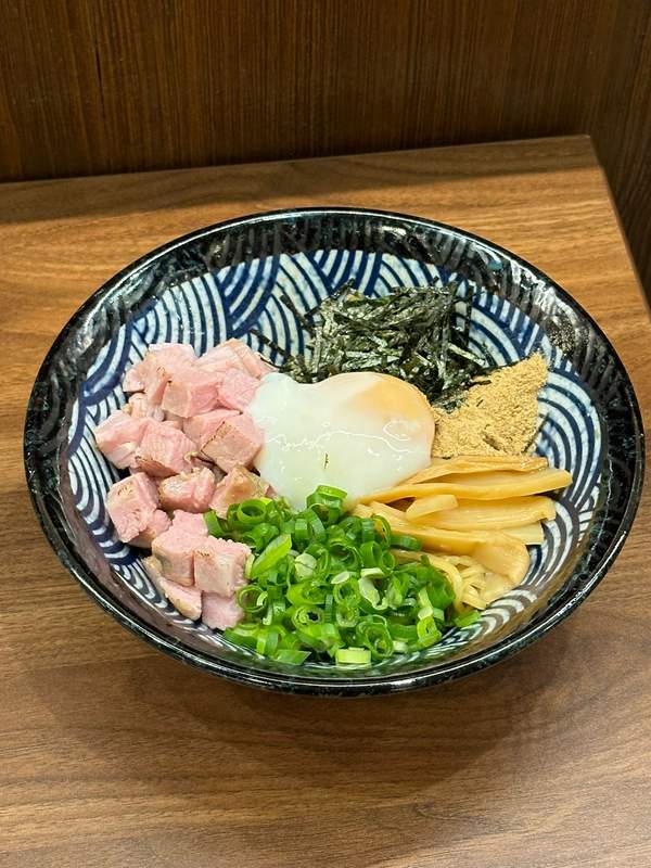 Caldo de cerdo , chasu de cerdo ibérico , brotes de bambu, hongos, huevo,algas,cebolleta