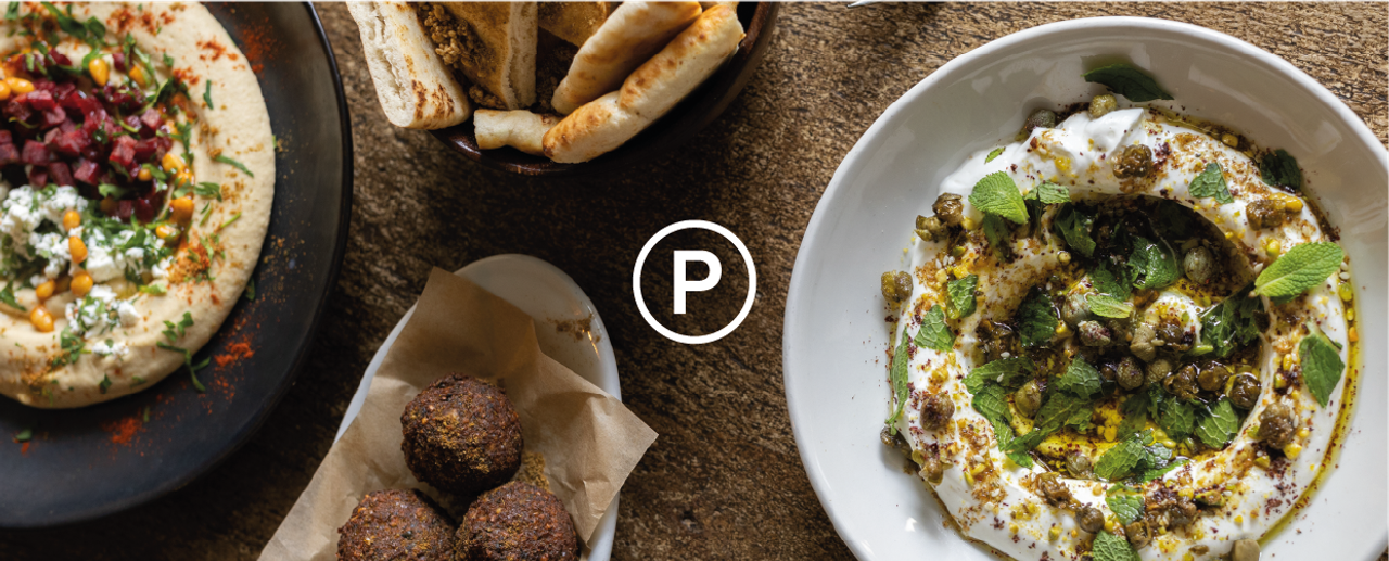 za'atar, pistachos, alcaparras, menta y pan de pita