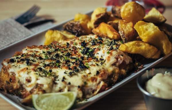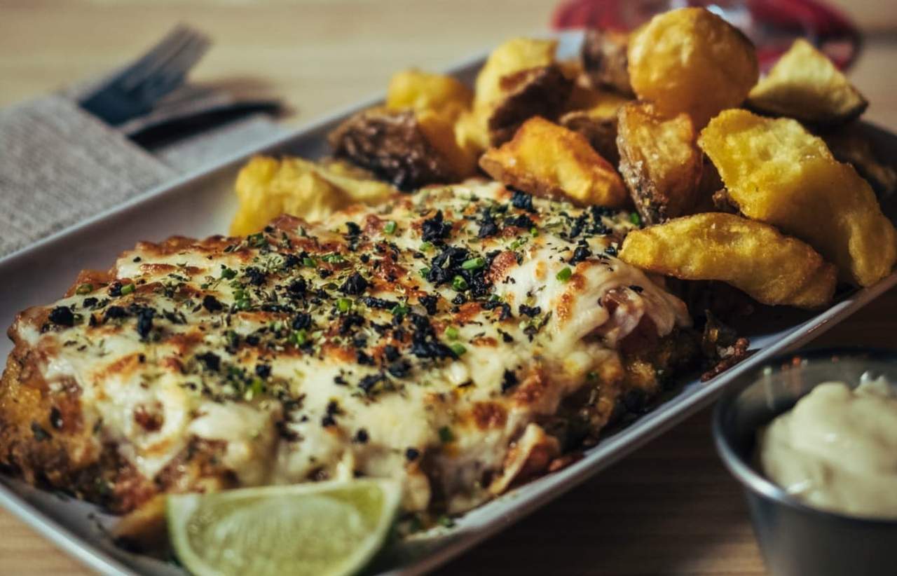 Milanesa A La Napolitana Con Patatas Rotas Fritas