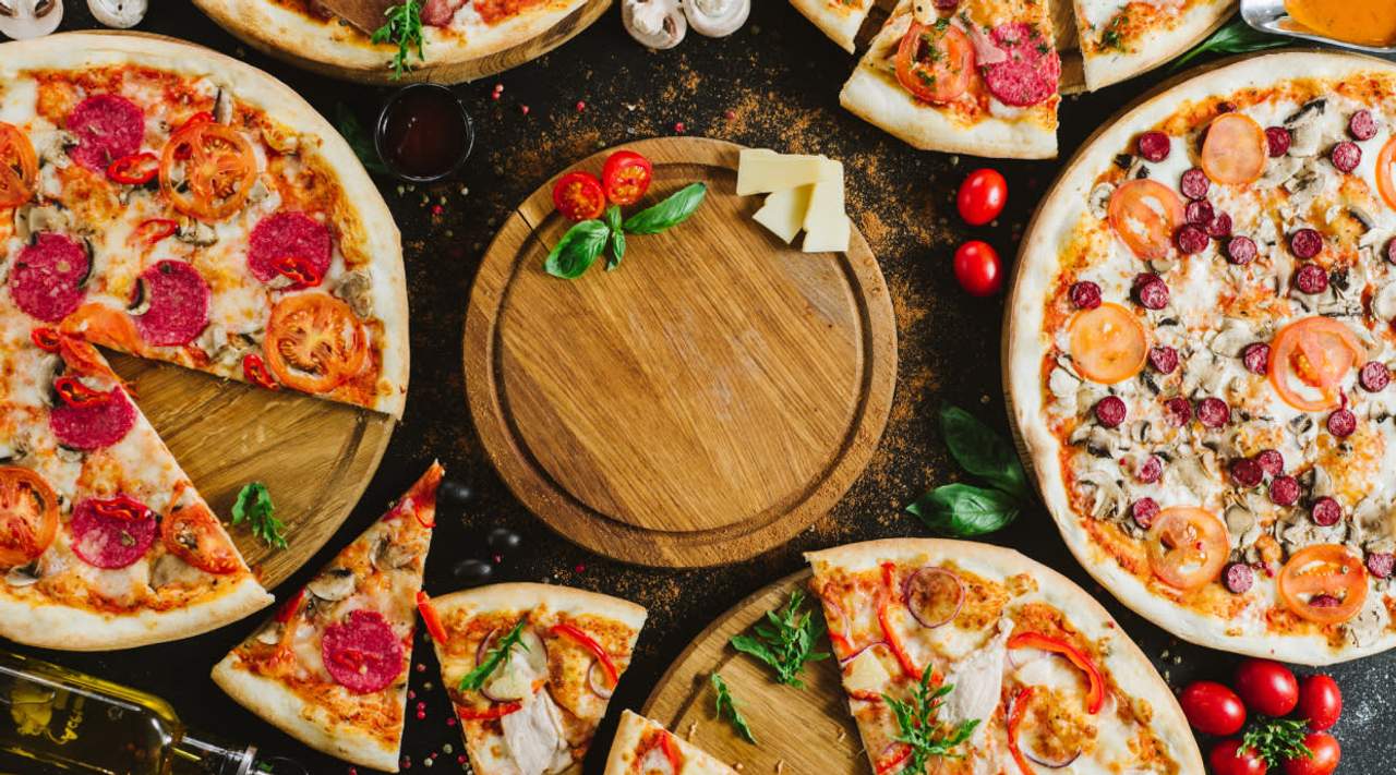 Tomate, queso, piña, oliva negra, carne de pollo / ternera, orégano y champiñones