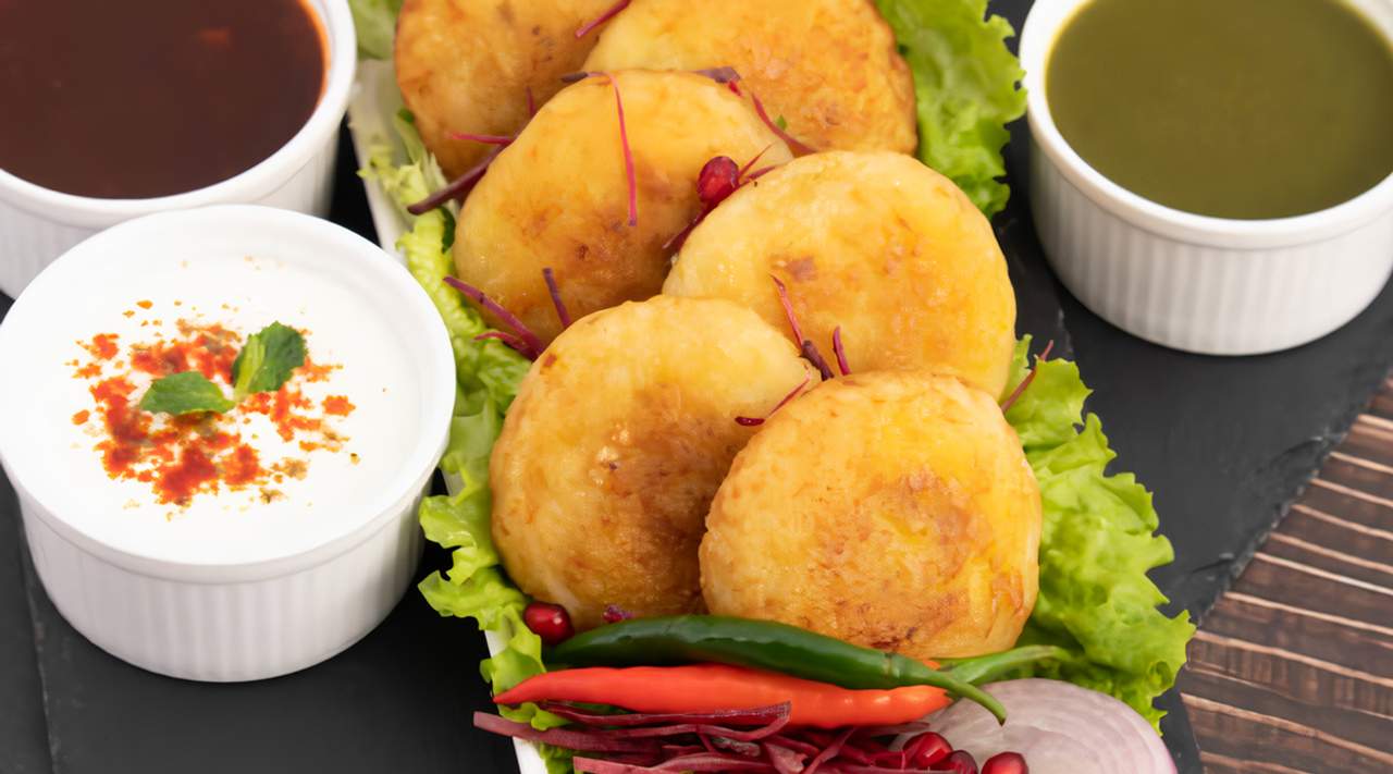 Tikki de patata, yogur, chutneys, especias