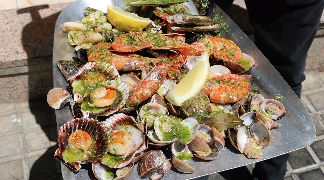 La Mariscada está compuesta por almejas, mejillones, zamburiñas, gambas, navajas y calamar. Todo cocinado a la plancha y aliñado con aceite, ajo y perejil.