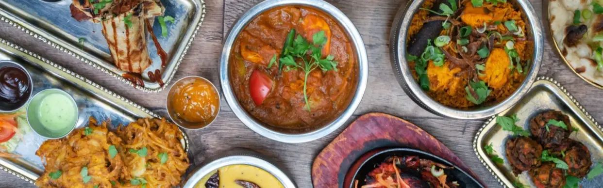 Pollo tikka marindo y asado con salsa dulce de almendras y coco