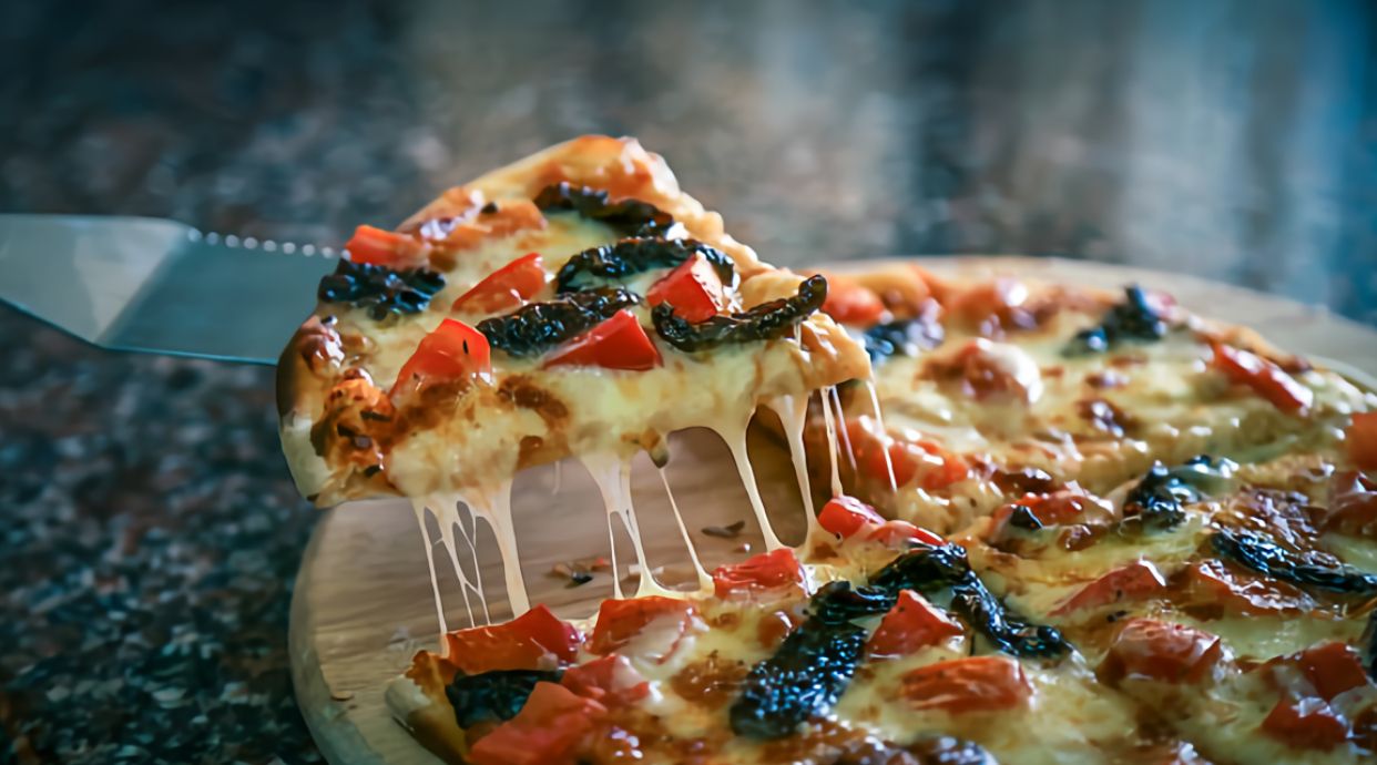 Tomate, mozzarella, carne picada, cebolla, pepperoni y olivas