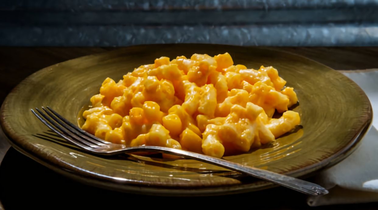Un plato de pasta dulce y picante jamaicana, incluyendo queso y verduras italianas