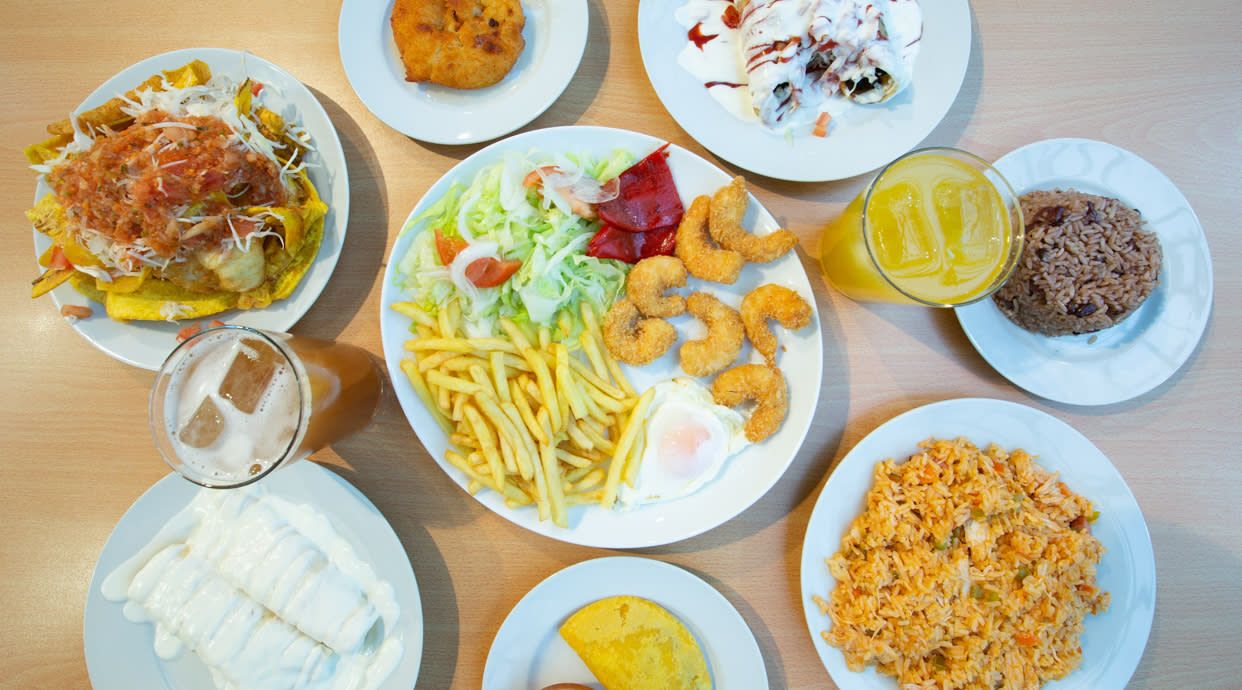 Ensalada, queso, chismol, gallo pinto y tortilla o tajadas