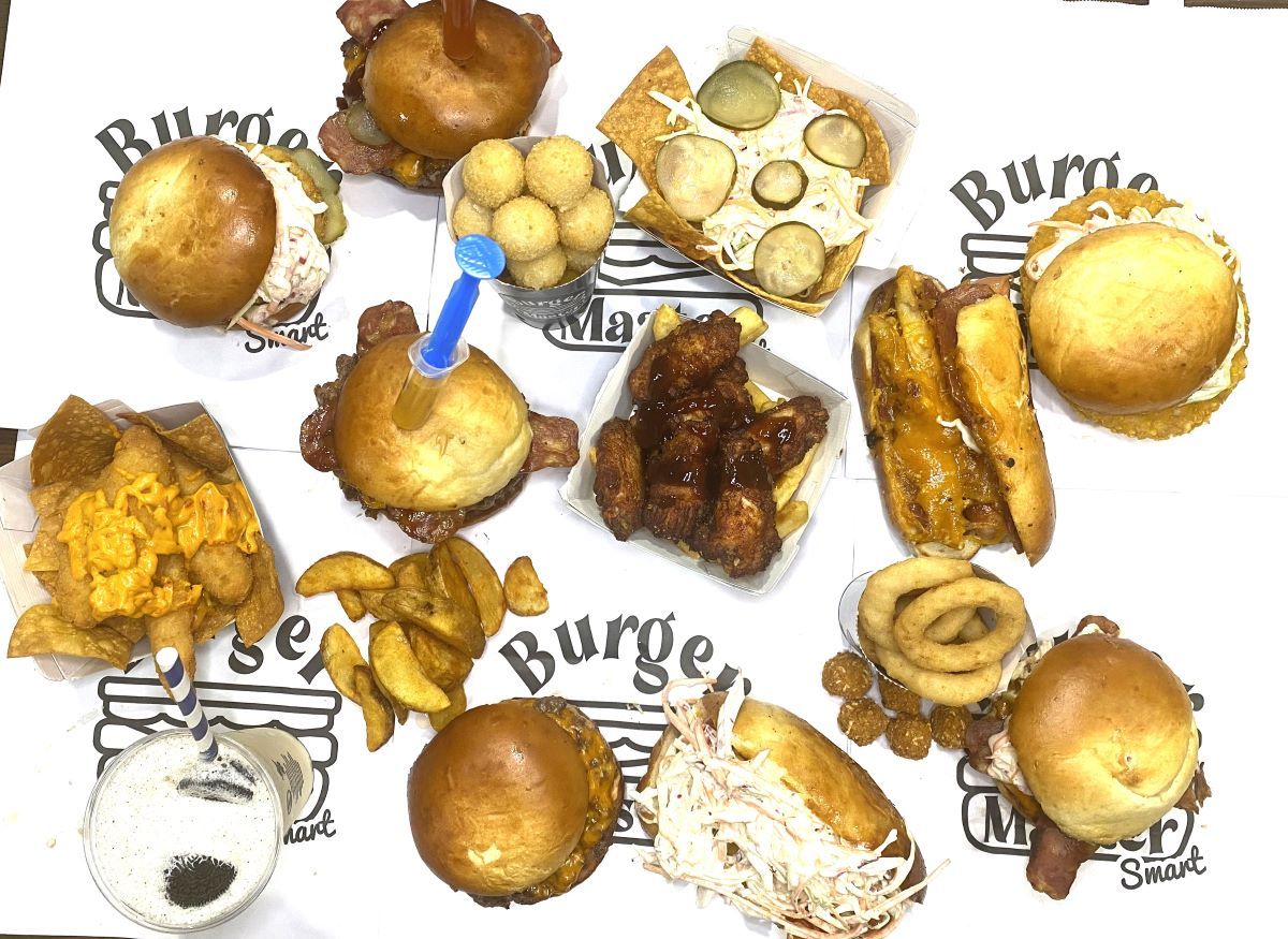 Pan brioche casero, smash black angus, queso cheddar, bacon, lechuga, tomate,cebolla salsa secreta, patatas fritas