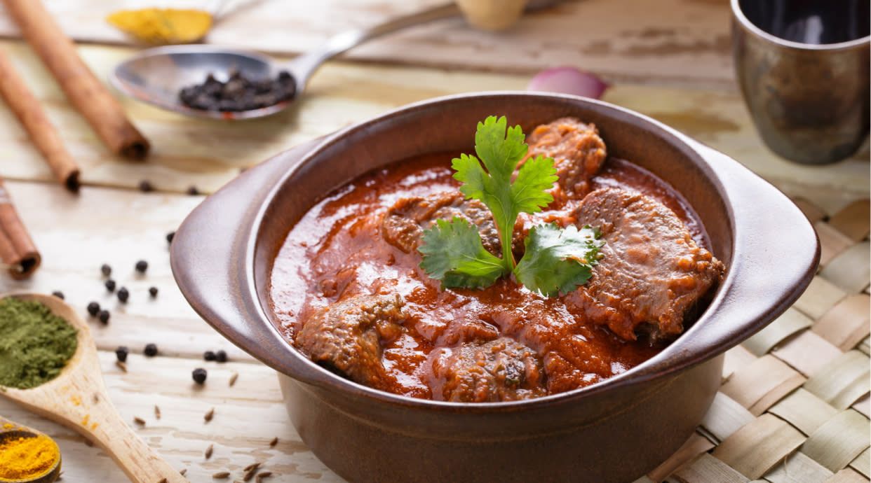 Lamb cooked in Kashmiri mild spices with tomatoes, yogurt and coriander