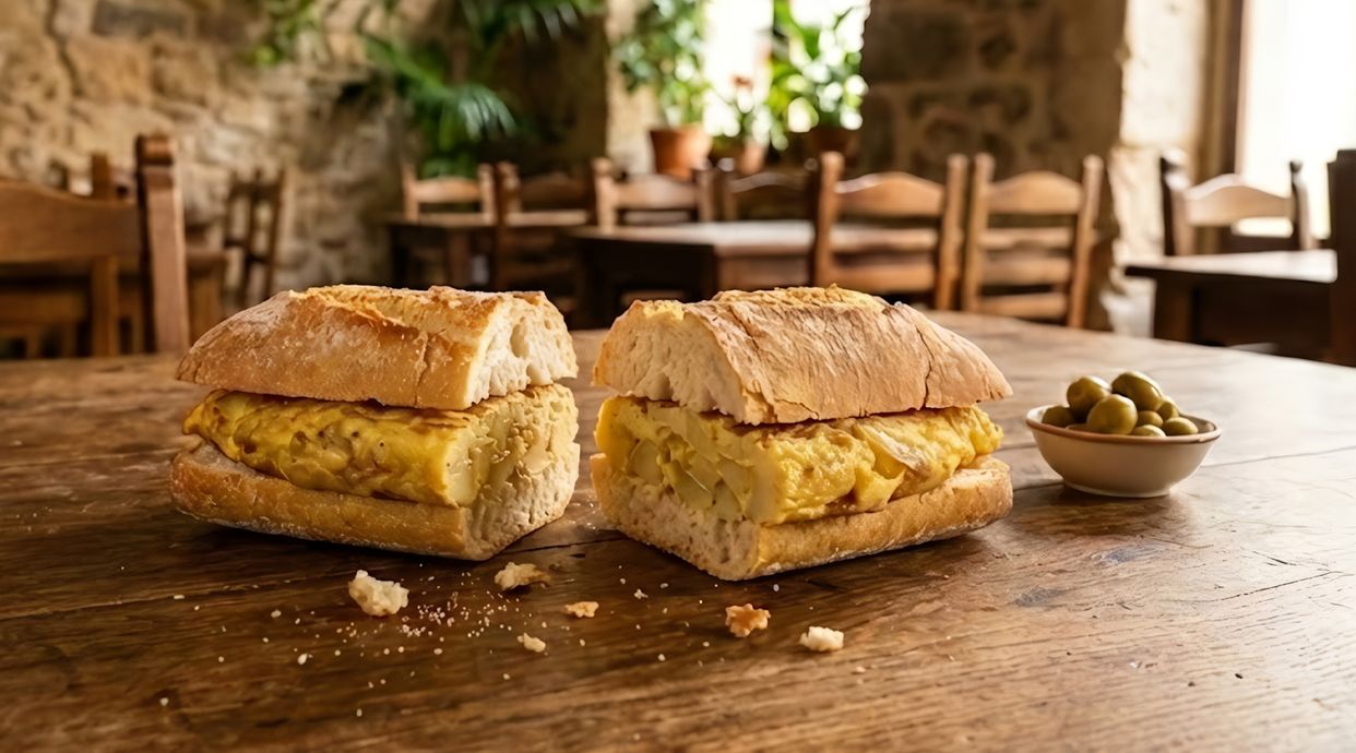 Pan con pesto, rúcula, jamón serrano y brie. Contiene alérgenos