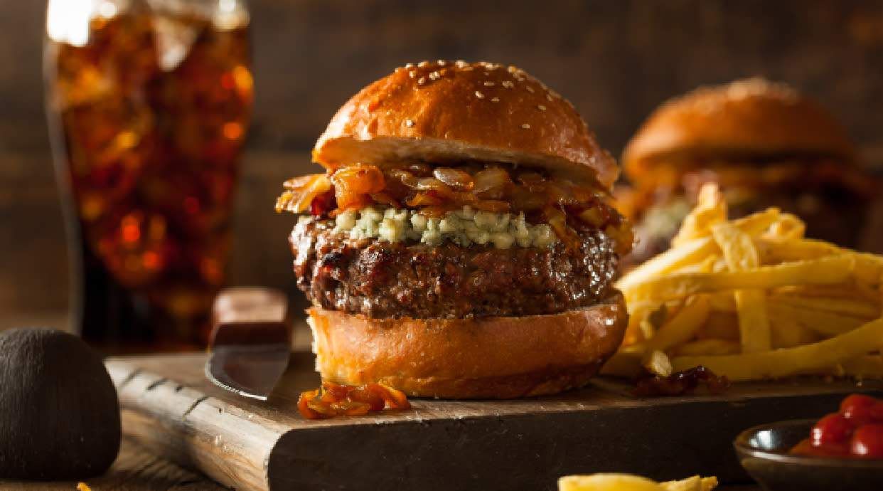 Smash con queso más patatas fritas caseras y refresco a elegir