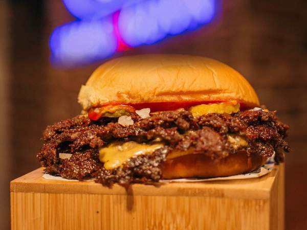 Doble smash 100% buey sin aditivos ni conservantes, queso fundido cheddar premium, pan Martin’s Potato Rolls, pepinillo agridulce, cebolla dulce asturiana y salsa kétchup mostaza, acompañado de patatas extracrujientes Mcain y bebida a escoger