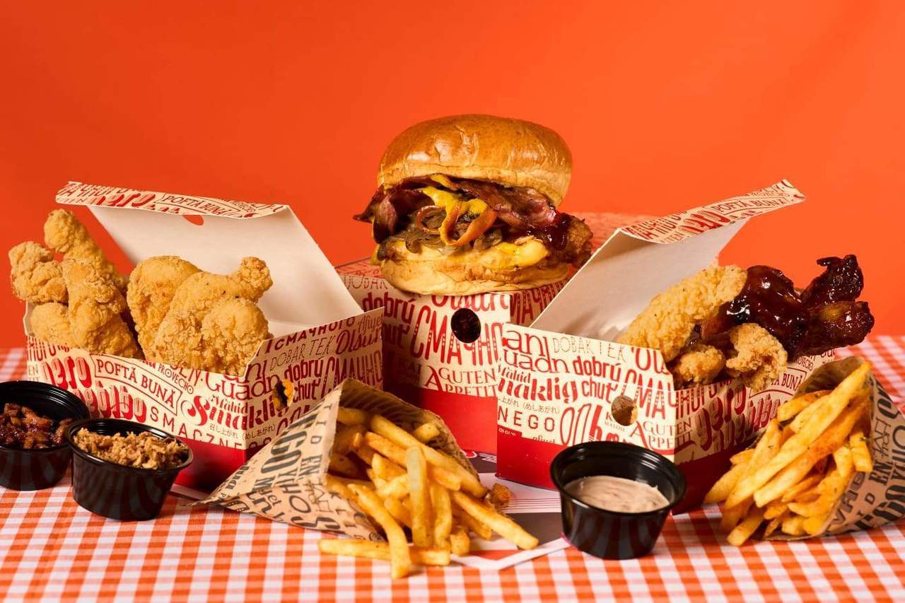 3 Tiras de pollo frito estilo Lousiana, 3 alitas de pollo fritas y marinadas, una ración de patatas fritas y una bebida