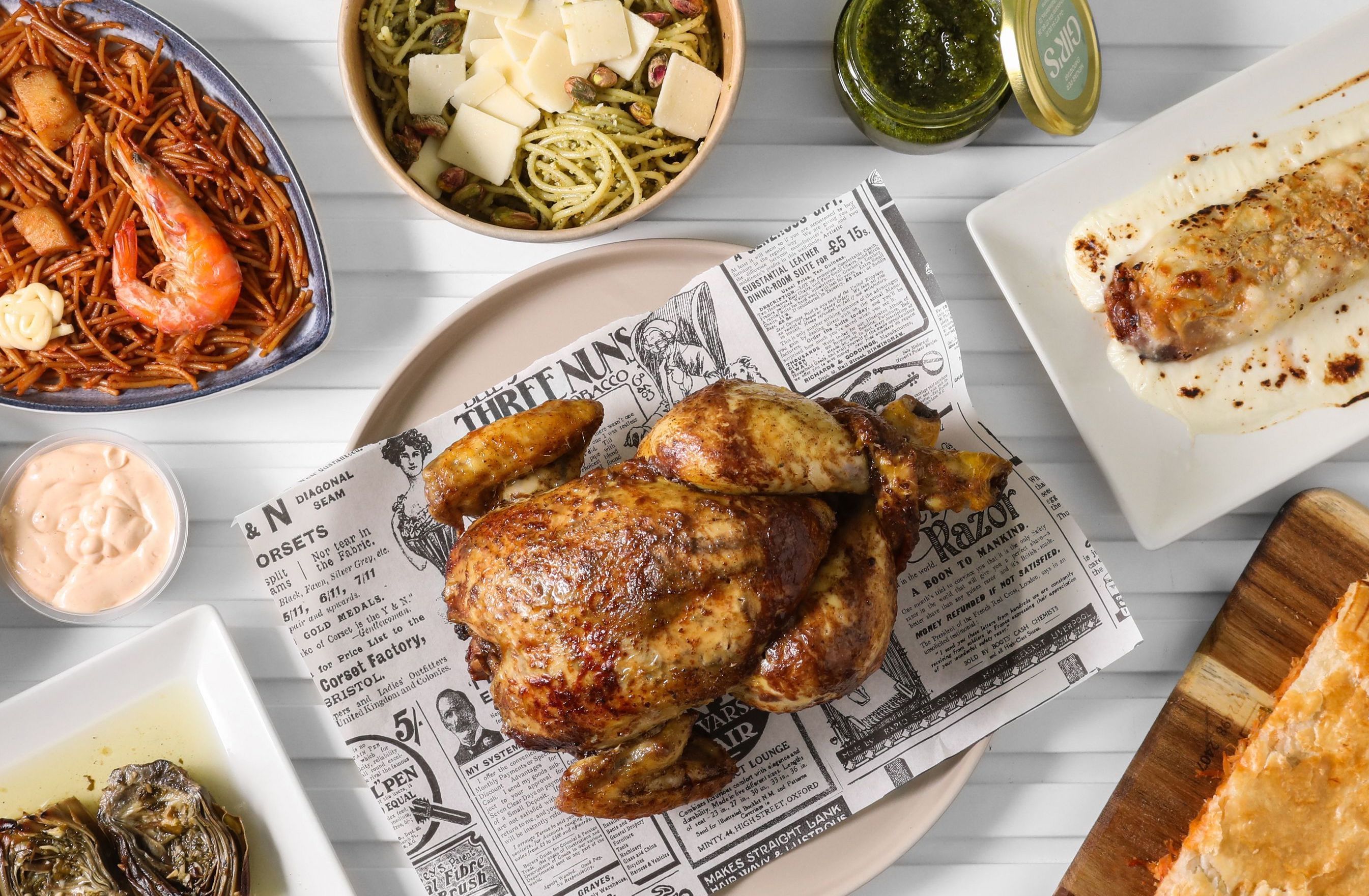 Incluye pollo entero, patatas asadas y 1 botella de vino blanco o tinto gir’s