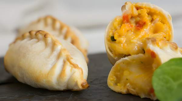Preparados con harina de trigo nuestra ración de 6 pasteles surtidos de carne con arroz, champiñón, pollo o papa con queso, te sorprenderá, viene acompañado con nuestra salsa verde que es una sensación, los sabores se despachan según disponibilidad