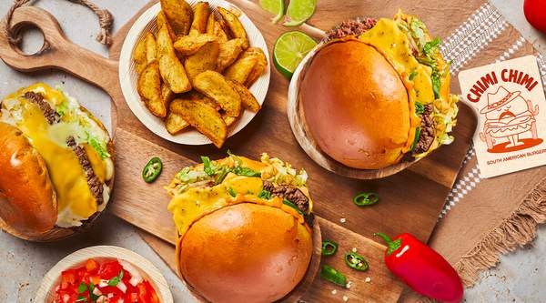 Pan brioche, mayo chimichurri, hamburguesa black angus, doble queso cheddar fundido y lechuga iceberg